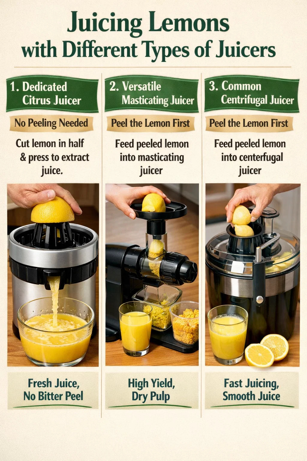Daca ai acasa un storcator de tip "macinat" cu viteza mica, poti si sucul de lamai, dar nu le arunca niciodata direct.
