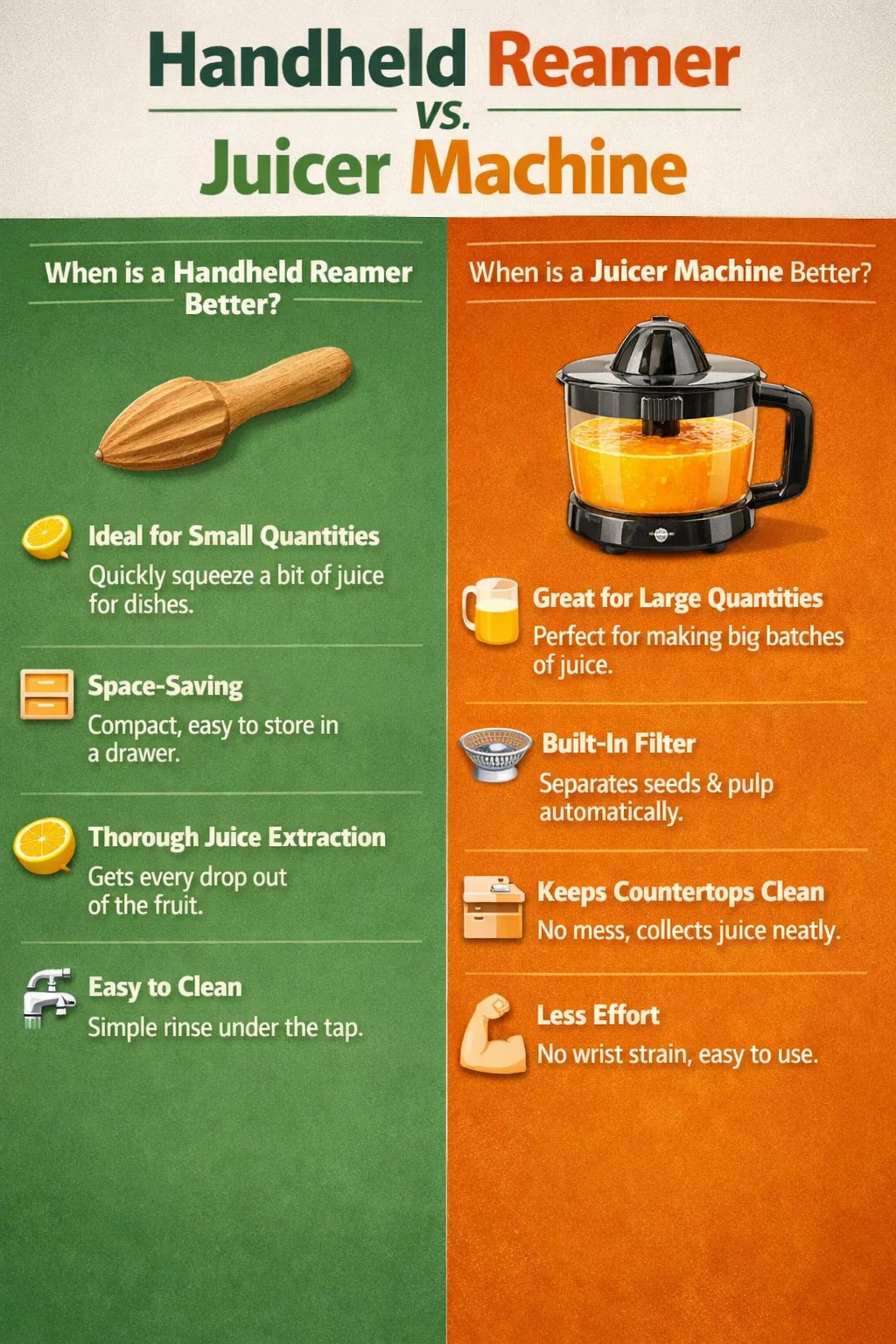 În bucătărie, este mai rentabil să folosiți un alez portabil sau un storcator cu bol sau motor? Acesta este în esență un compromis între „efort” și „eficiență”.